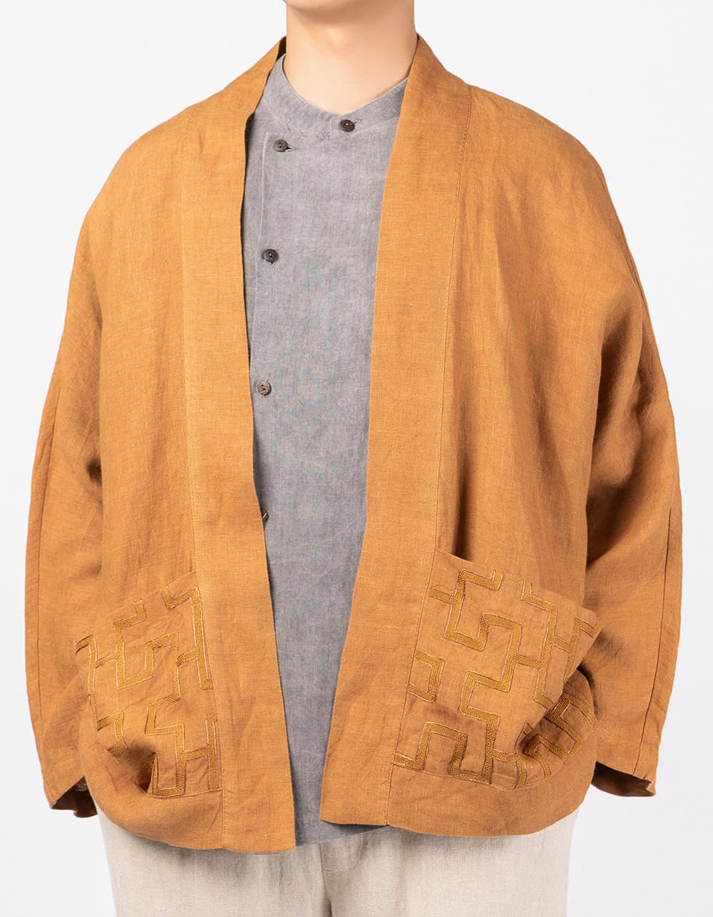 Featuring unique fabric and exquisite hand-embroidered patterns, this noragi is not just clothing but also a work of art that showcases distinctive taste and refined luxury